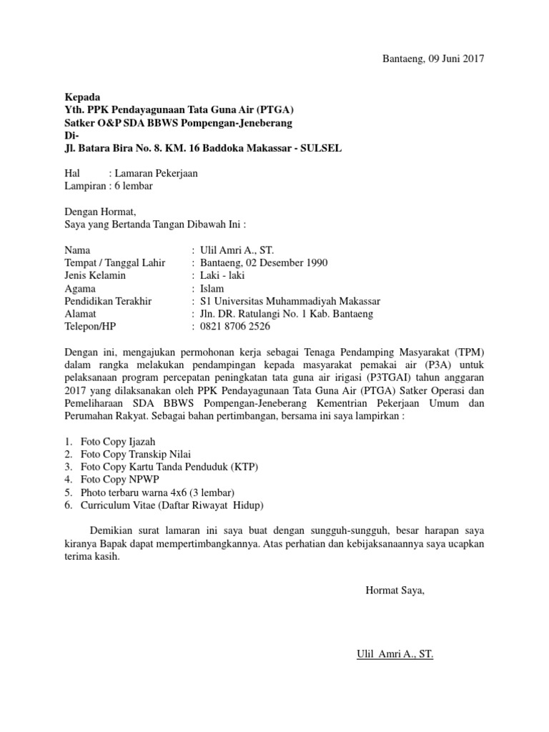 Contoh surat lamaran pamsimas kalimantan selatan.